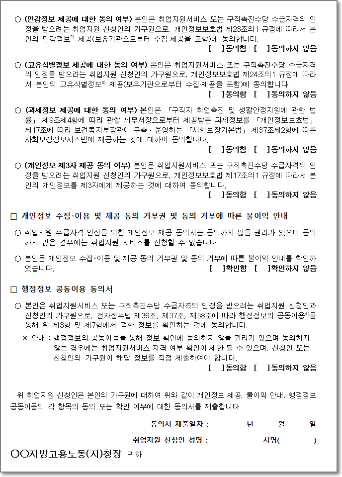 취업지원 신청서