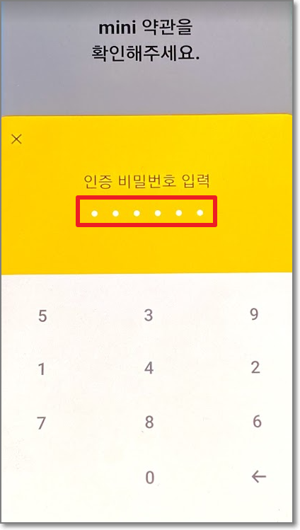 이제 mini의 비밀번호 4자리를 설정해야 하고 다시 인증비밀번호인 6자리를 입력하면 됩니다.
