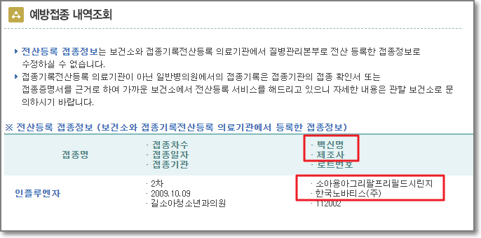 혹시 코박스플루4가를 접종한것은 아닌지 확인해볼 수 있는 방법이 있습니다.