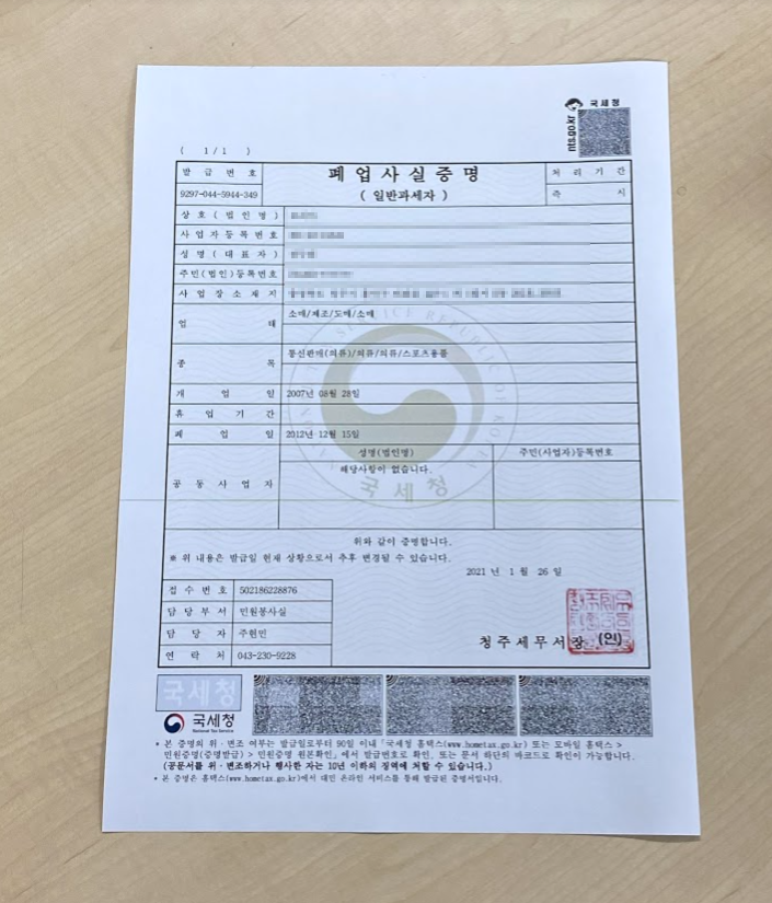 폐업증명서 발급