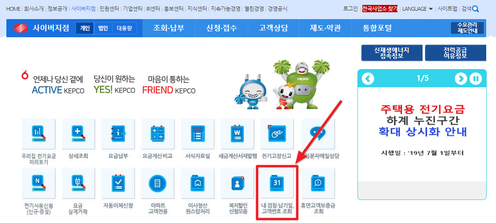 1. 한전 사이버지점 홈페이지 접속 및 고객번호 조회