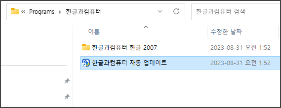 한컴 2007 자동 업데이트 끄기 (탐색기)