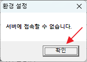 서버에 접속할 수 없다고 나올 것입니다. '확인'을 누르면 끝입니다.