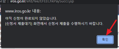 이미 접수가 되었으니 '확인'을 누르면 됩니다.
