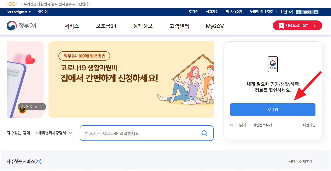 1. 정부24 접속 및 로그인하기