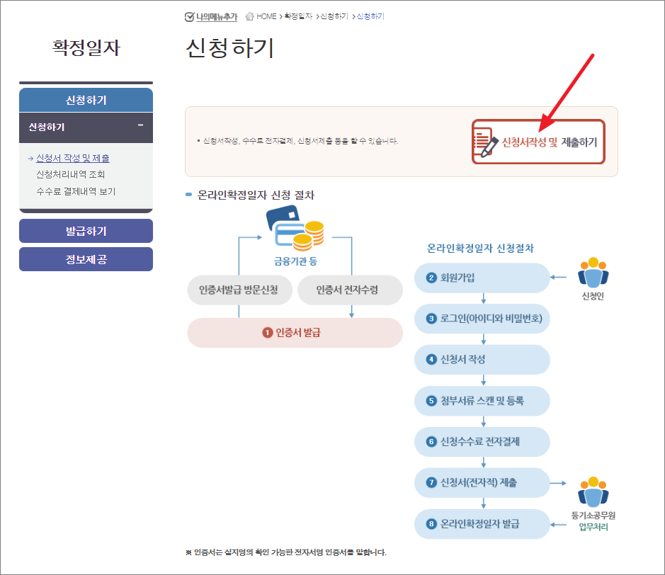 인터넷으로 확정일자 부여 신청하는 방법