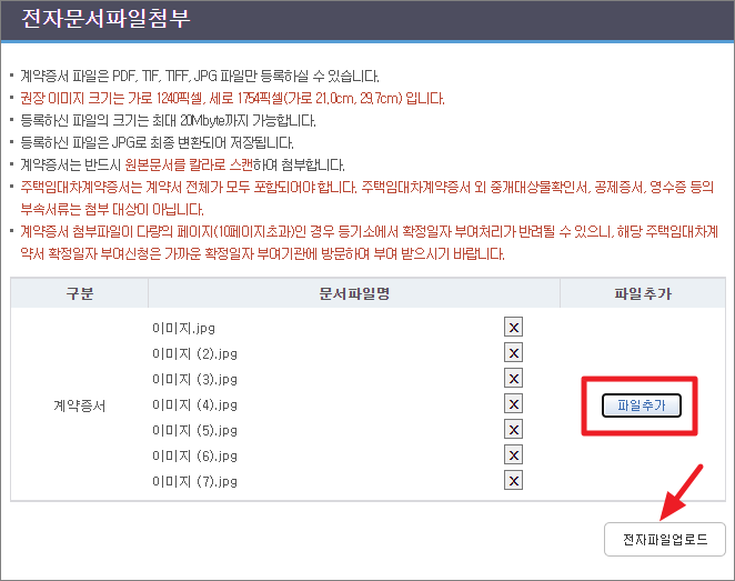 모두 첨부했으면 '전자파일업로드'를 누릅니다.