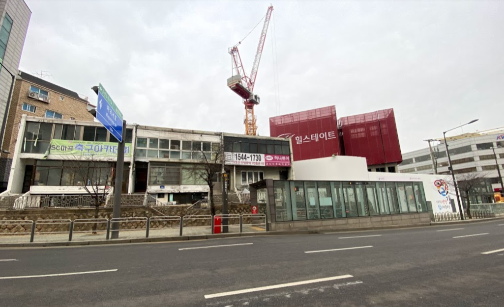 바로 근처에(몇 발자국) 버스정류장도 있습니다만 아래 오른쪽에서 보이는 저 건물이 정리가 안되면 꽤 불편할 것으로 예상됩니다.