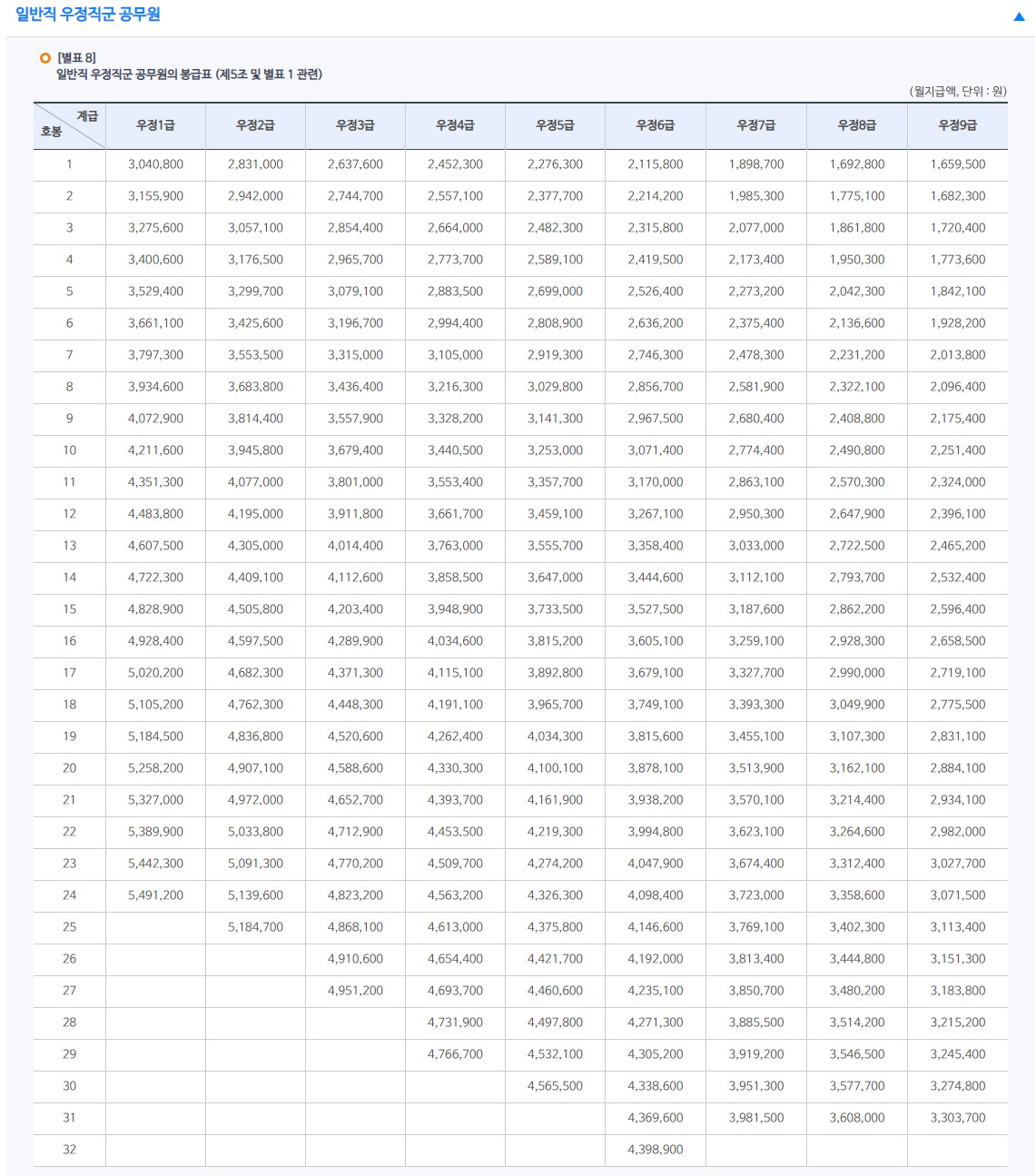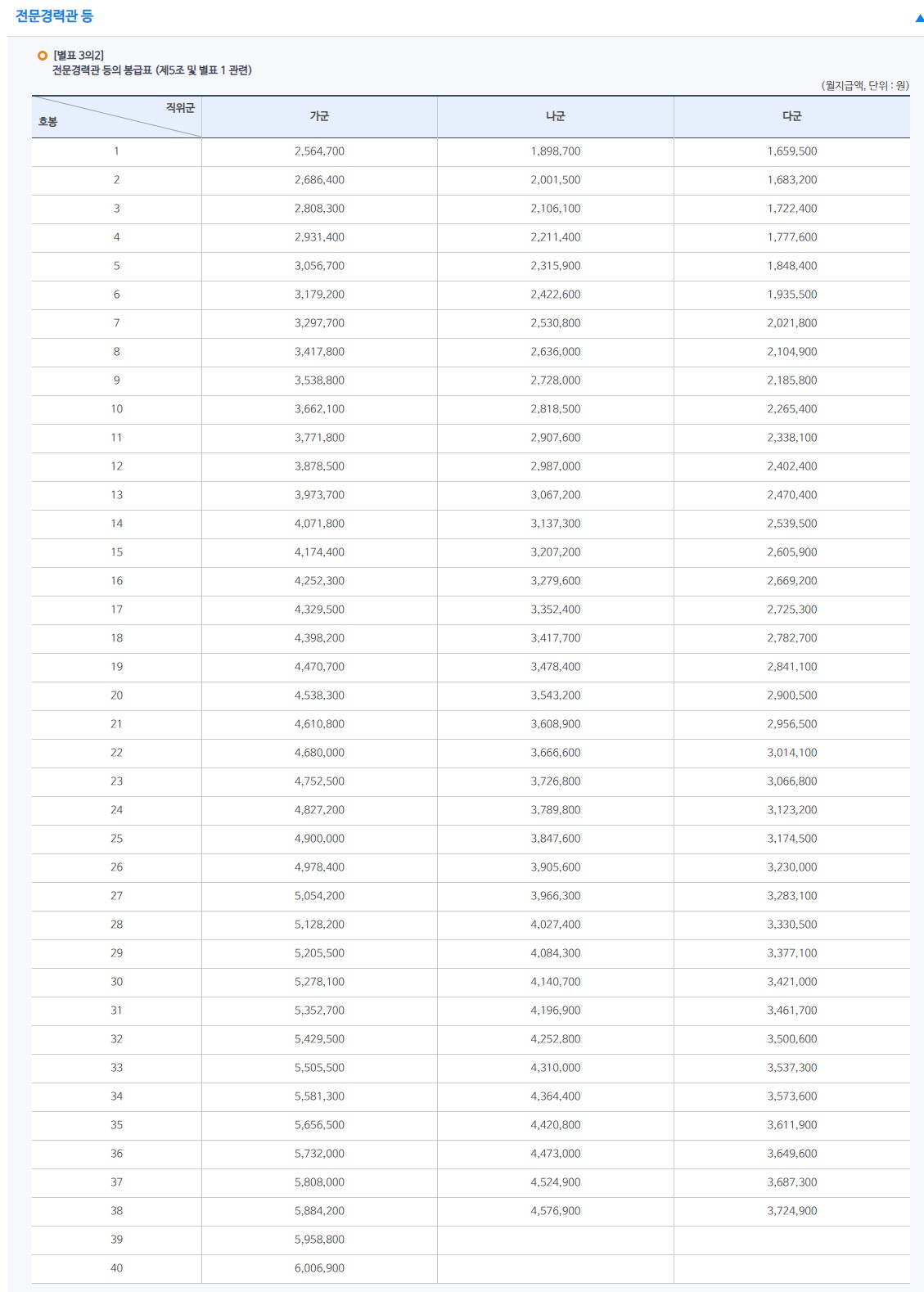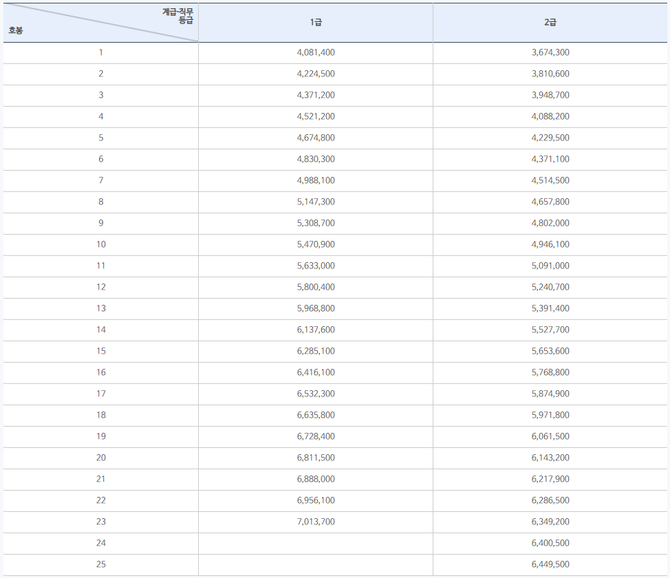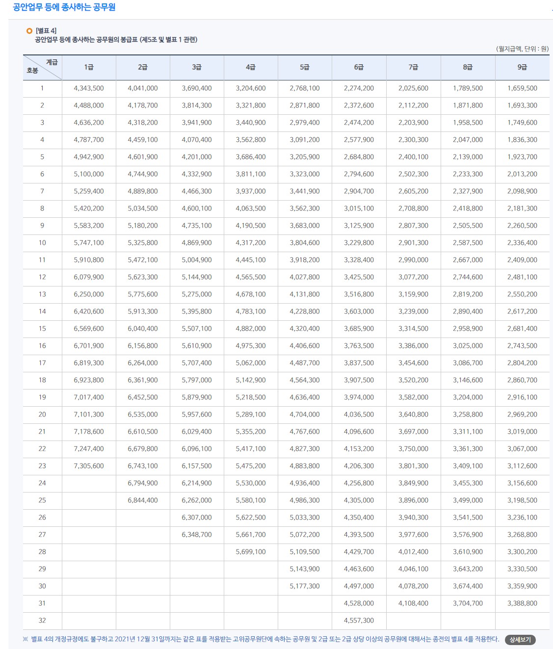 그러면 아래에서 2021년 공무원 봉급표를 직종별로 하나하나 보겠습니다.