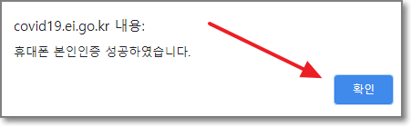 휴대폰 본인인증에 성공했다고 나옵니다. 이제 확인을 누르면 됩니다.