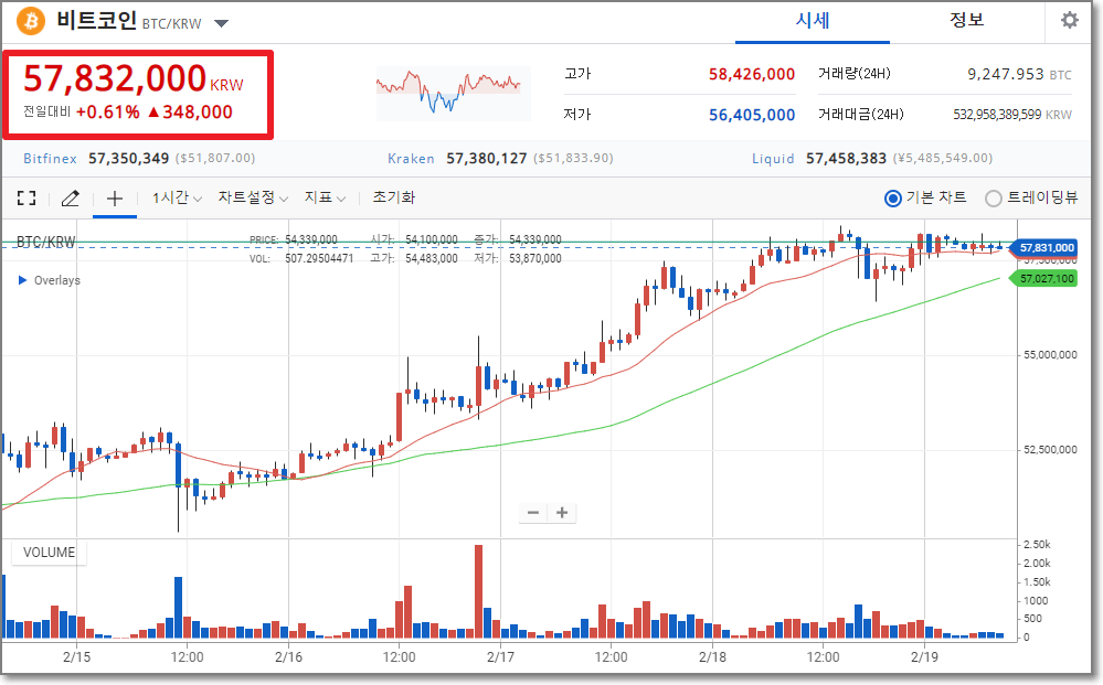 요즘 들어서 코인가격이 2018년 광풍 이후로 더 큰 광풍이라고 할 수 있을만큼 오르고 있는데요. 비트코인의 경우에는 2018년에 최고로 올랐던 2800만원보다도 2배가 넘는 5700만원에 거래가 되고 있고, 이더리움도 2018년 240만원을 거의 회복한 215만원까지 오르고 있는 상황입니다.